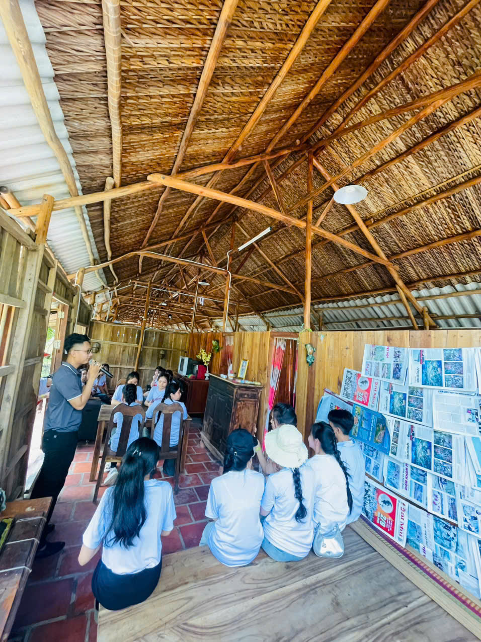 Dấu ấn lịch sử hào hùng: Chuyến đi mang đậm tính giáo dục truyền thống khi đoàn đặt chân đến Mô hình Làng Rừng Vồ Dơi. Tại đây, các em được nghe giới thiệu về quá trình hình thành căn cứ cách mạng trong thời kỳ chống Mỹ - Diệm và hiểu thêm về khu di tích lịch sử cấp Quốc gia vô cùng quý giá này.